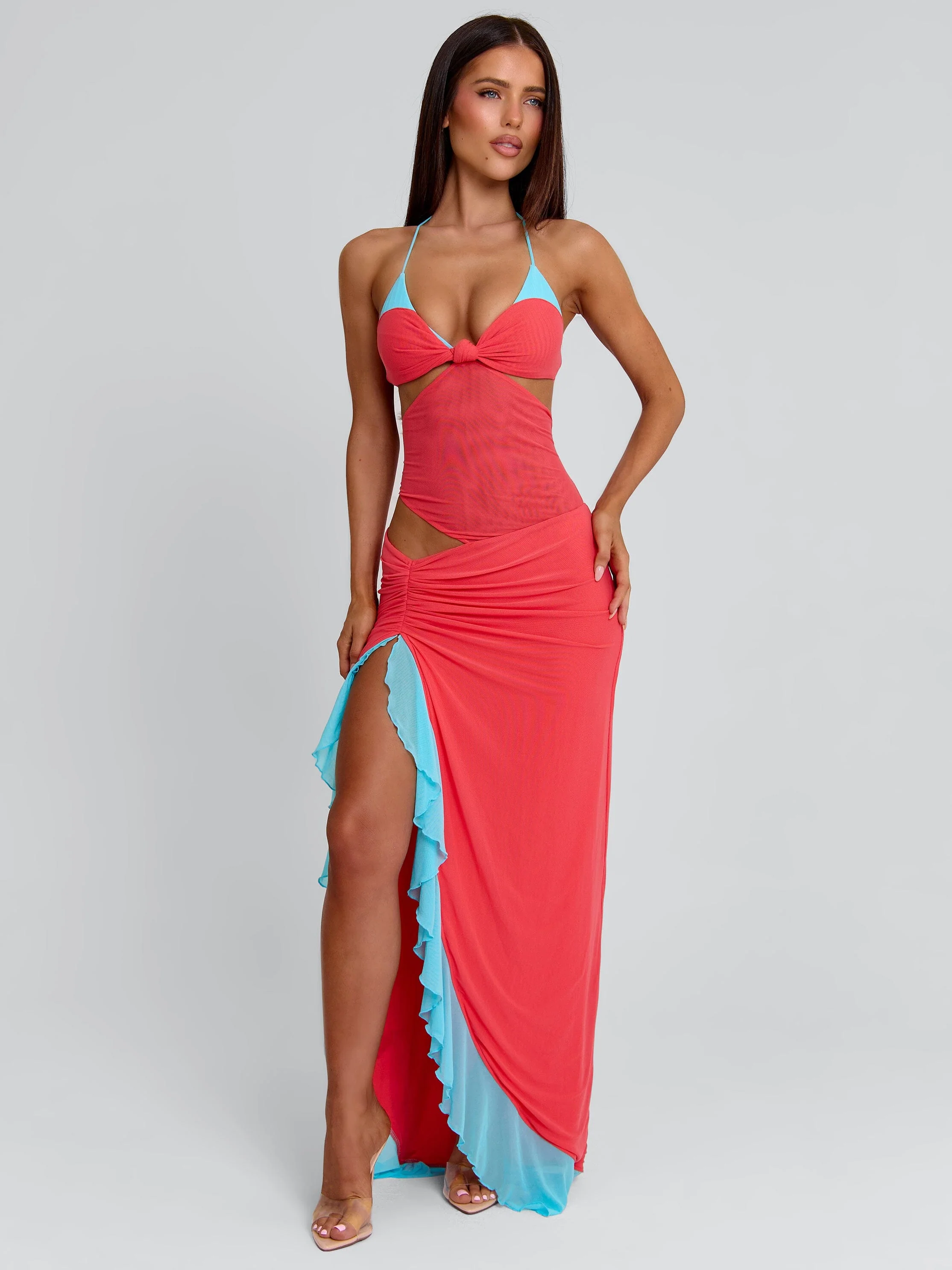 Miranda Maxi Dress Coral And Blue