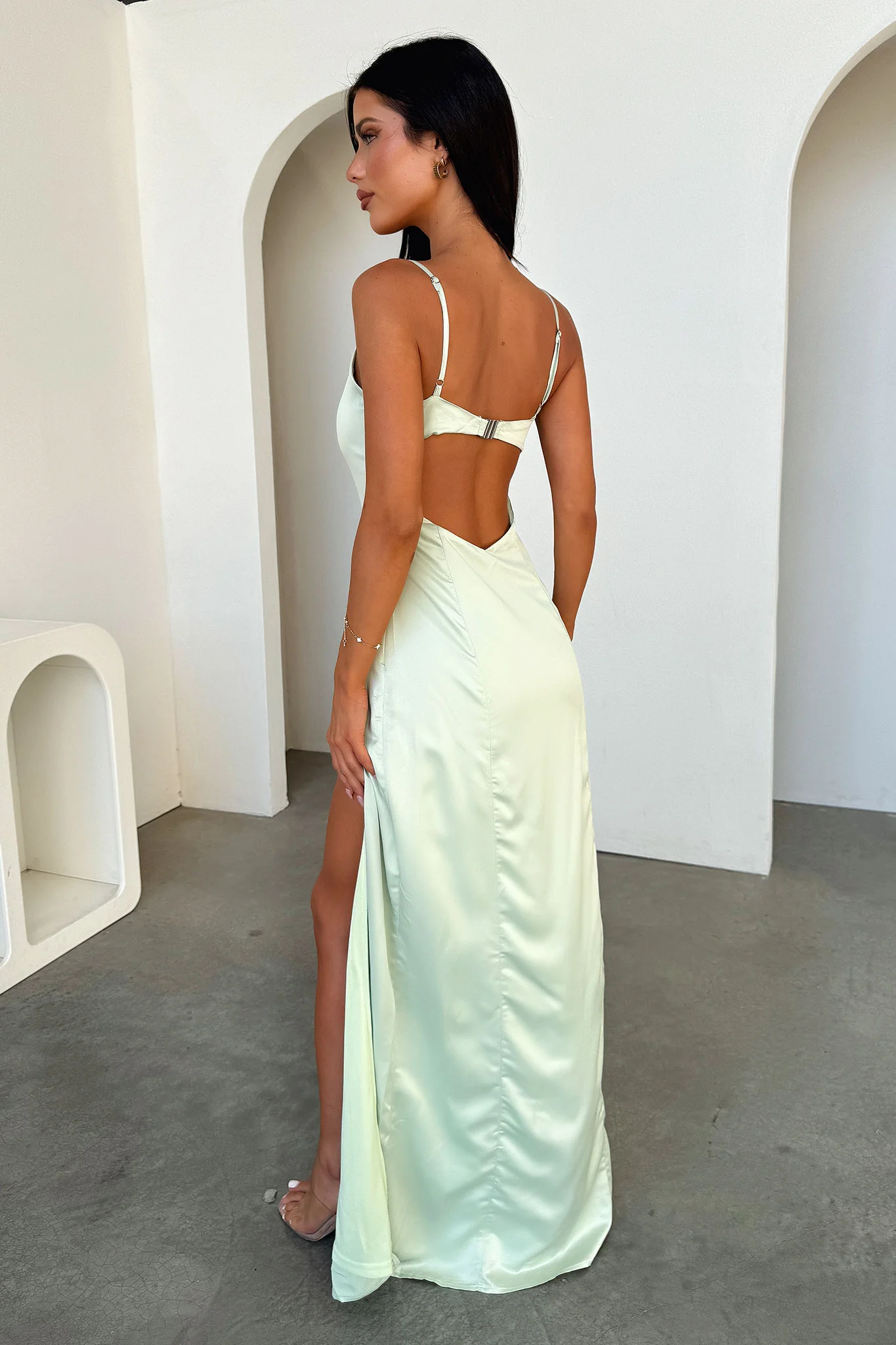 Violetta Scoop Neck Satin Maxi Dress - Sage