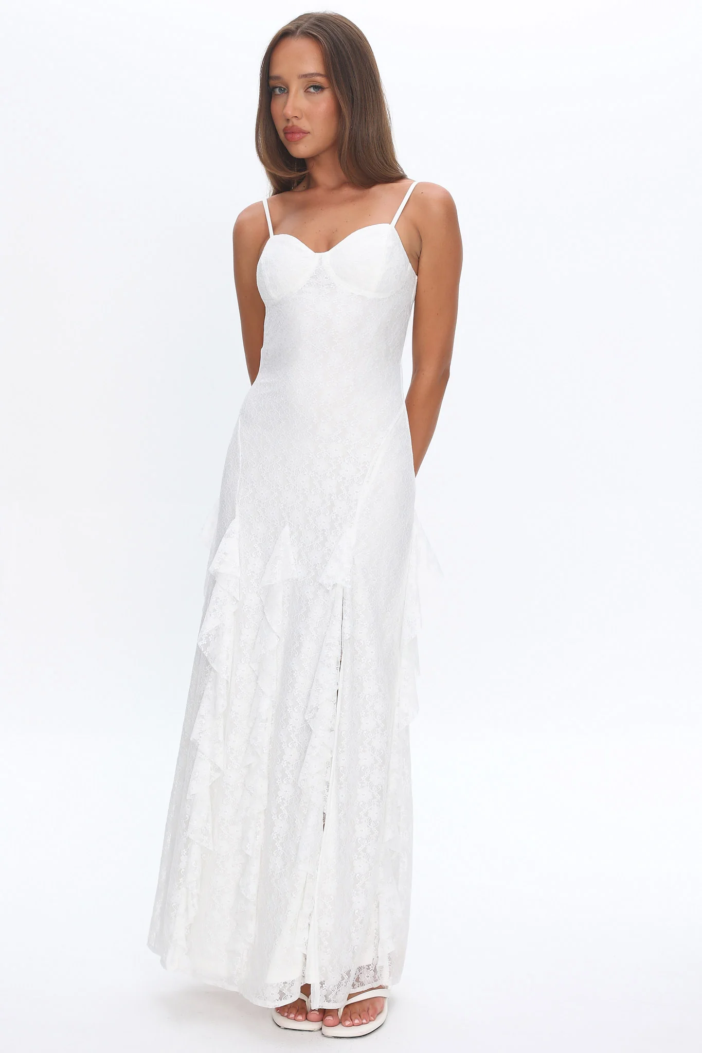 Onique Lace-Up Back Split Maxi Dress Lace White